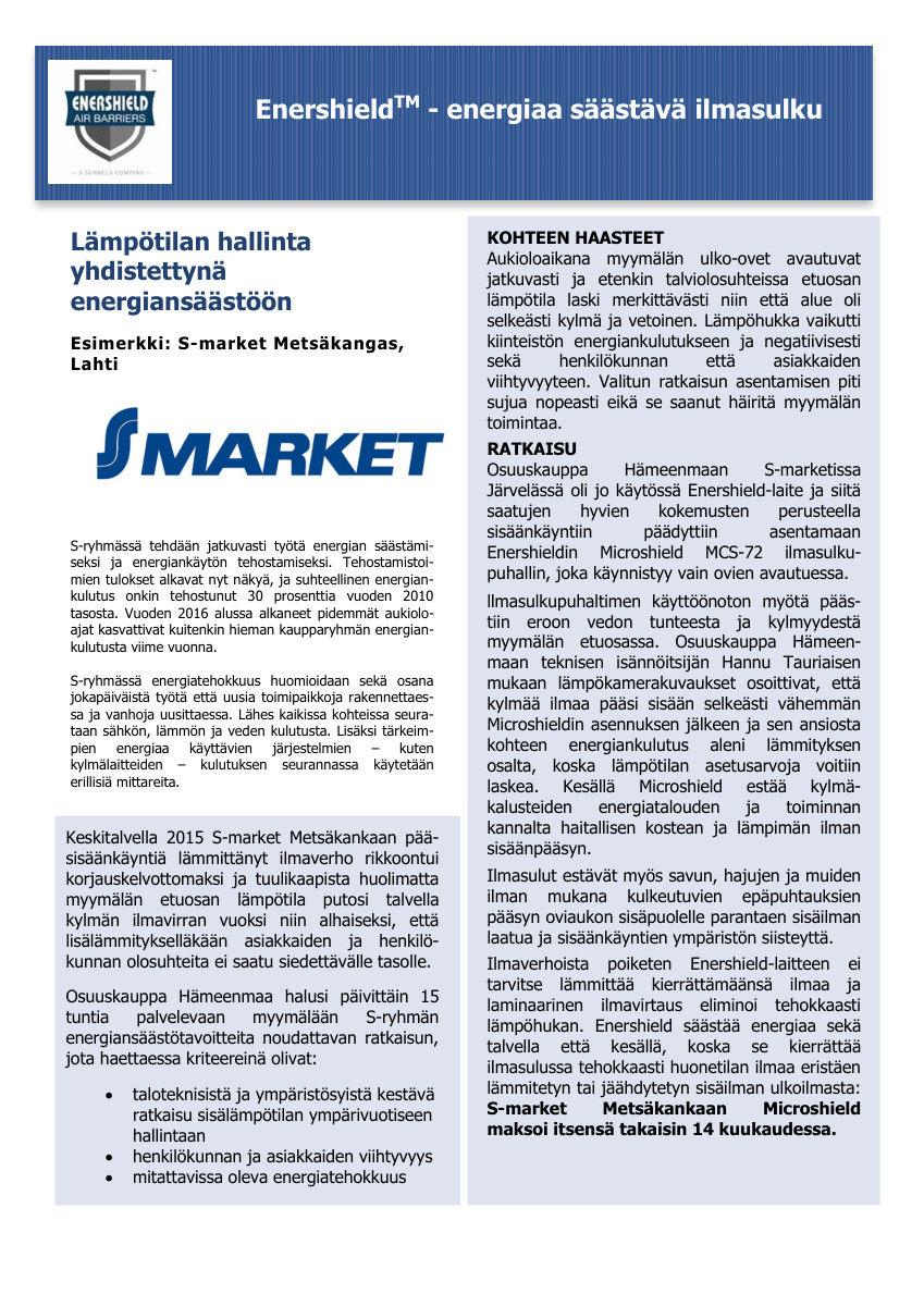 Lämpötilan hallinta yhdistettynä energian säästöön. Esimerkkinä S-market Metsäkangas, Lahti.